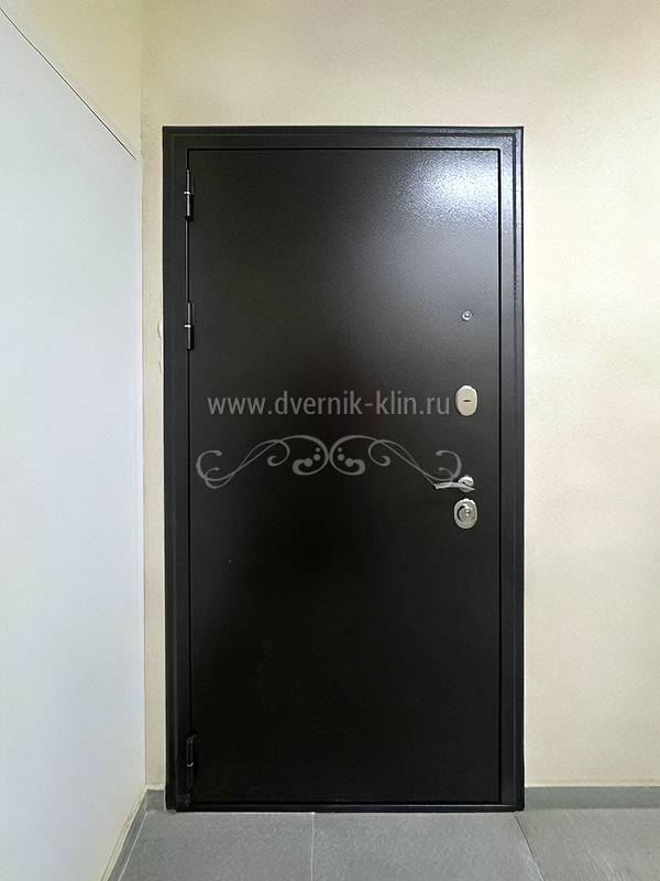 Внутренняя конструкция дверей всех ценовых категорий схожа между собой. Двери эконом-класса состоят из металлического каркаса, к которому приварены листы стали толщиной 2 мм. В конструкцию полотна также входят четыре ребра жесткости, изготовленные из профильной трубы.